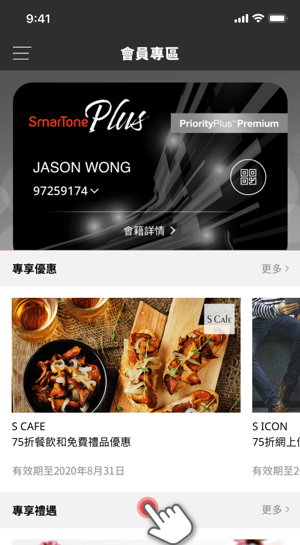 下載及使用SmarTone網絡開啟SmarTone CARE應用程式,即可自動登入。點按SmarTone Plus會員專區
